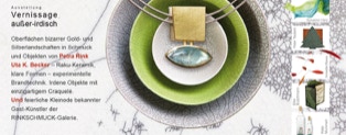 Oberflächen bizarrer Gold- und Silberlandschaften in Schmuck und Objekten von Petra Rink, Uta K. Becker – Raku-Keramik, klare Formen – experimentelle Brandtechnik. Irdene Objekte mit einzigartigem Craquelé. Und feierliche Kleinode bekannter Gast-Künstler.