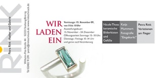 Nicole Thoss mit keramischen Bilderkisten und Gefäßen – Katja Mummert mit Fotografie “Eingekorkt“ – Petra Rink mit Variationen am Finger.