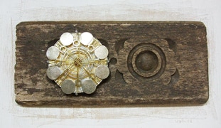 Aus mitgebrachten, persönlichen Lieblings(fund)stücken, Fotos und Andenken gestaltet Petra Rink mit Edelmetallen, Malerei, Blattgold und Upcycling ... ein individuelles Design-Objekt!