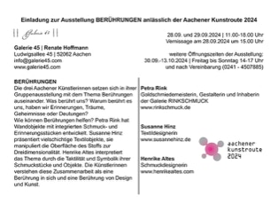Ausstellung "BERÜHRUNGEN" – mit Petra Rink, Susanne Hinz und Henrike Altes.