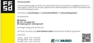 Das Forum für Schmuck und Design e.V. präsentiert drei verschiedene Mitgliederausstellungen der letzten Jahre in der Zeche Zollverein in 45309 Essen
