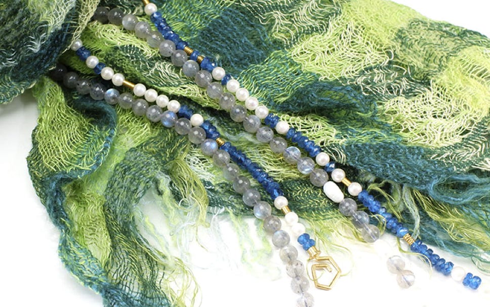 Stoff und Schmuck finden auf eine (dis)harmonische Weise zueinander…verweben sich in vielfältigen Beziehungen.