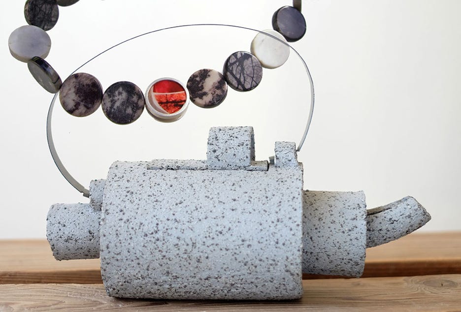 Leuchtend farbenfrohe, elegante Schmuckstücke von Petra Rink und ihre impressiven, künstlerischen Objekte verbünden sich selbstbewusst mit den textilen Wesen von Beate Zwick.